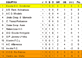 Resultados e Classificação da 1ª Jornada do Campeonato da 1ª Divisão Séniores